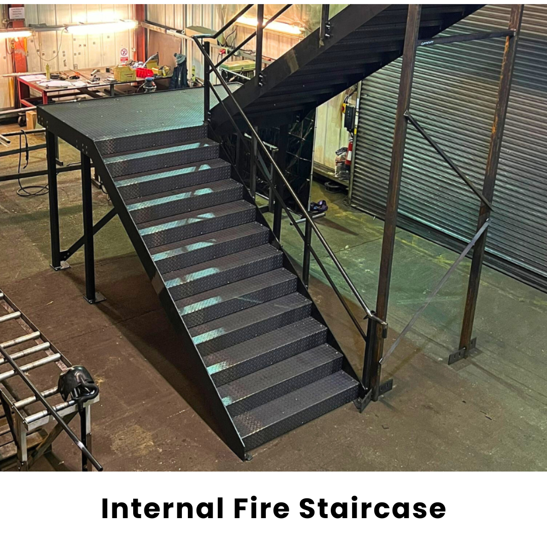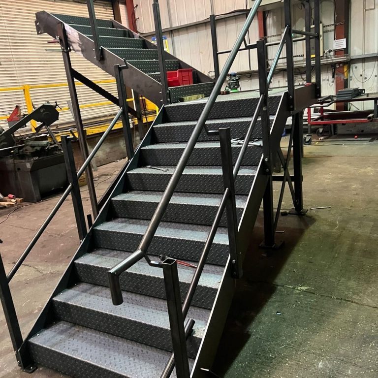 Custom-fabricated mezzanine stairs, staircases, and access ramps providing safe, compliant access solutions for industrial and commercial buildings across the UK.